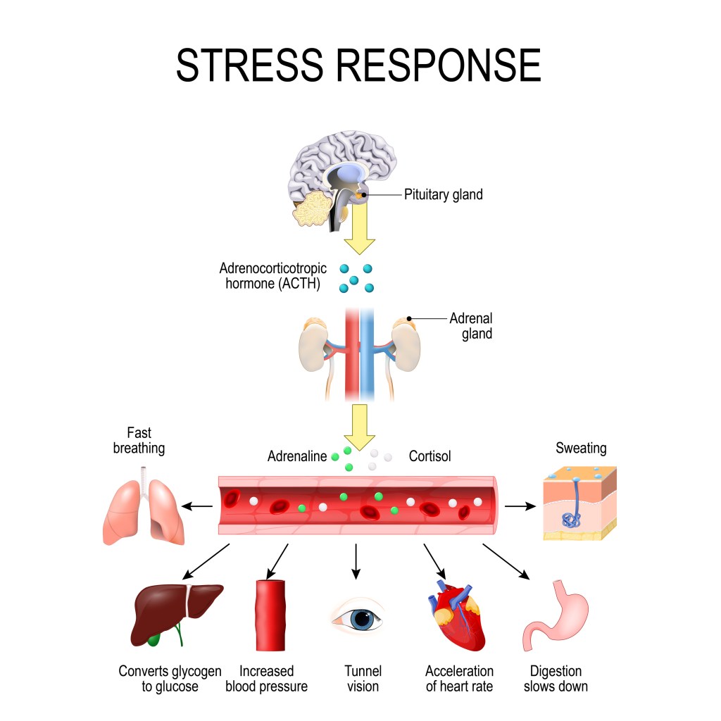 Es dauert je nach Ausmaß des Erregungszustandes eine Weile bis sich Hormonlevel und Durchblutung wieder auf einem normalen Niveau befinden. Kommt es zu einer Dauererregung oder einer Vielzahl hintereinander folgender kleinerer Reize spielt das in der Nebennierenrinde produzierte Cortisol eine wichtige Rolle, denn es kommt nun zu den ersten Langzeitschäden: